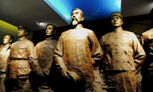 甘肅建黨的創(chuàng)始人張一悟同志與革命先烈雕像收藏于張一悟紀(jì)念館正廳