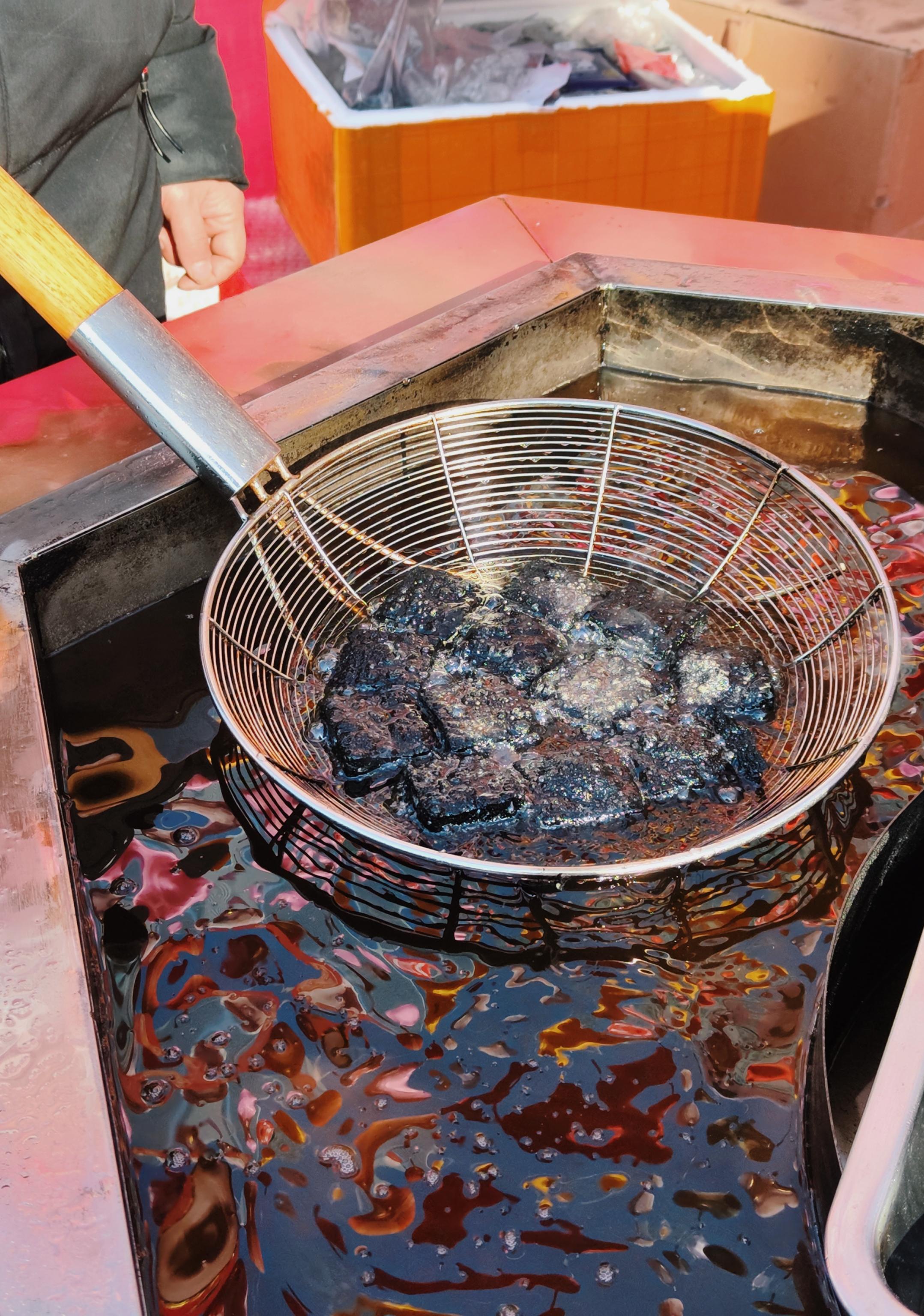 人間煙火處,年味漸濃時。新疆羊肉串、冰糖葫蘆、臭豆腐、酸辣粉、網(wǎng)紅大面筋,蘭州熱冬果……小吃攤生起騰騰熱氣,飄香十里。