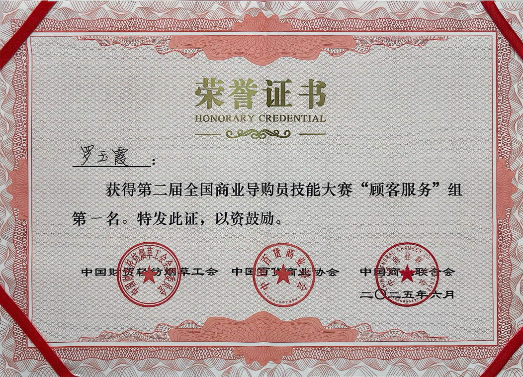 2025年6月5日—6日,由中國(guó)財(cái)貿(mào)輕紡煙草工會(huì)、中國(guó)百貨商業(yè)協(xié)會(huì)、中國(guó)商業(yè)聯(lián)合會(huì)、重慶市總工會(huì)共同舉辦的“第二屆商業(yè)導(dǎo)購(gòu)員技能大賽”決賽在重慶舉行。通過(guò)企業(yè)層層選拔、線(xiàn)上展示、專(zhuān)家初評(píng),60位選手從全國(guó)523名參賽選手中脫穎而出,在決賽現(xiàn)場(chǎng)展開(kāi)激烈的服務(wù)技藝比拼角逐,蘭州國(guó)芳百貨員工代表羅玉霞參與并榮獲“顧客服務(wù)”組第一名。